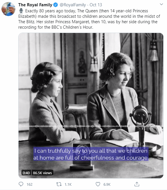 @RoyalFamily tweets about the activities of members of the British royal family and posts images from the family’s colourful past. Listening to the audiogram of the Queen’s radio speech to children, delivered when she was a mere 14 years old, made me pause to give thanks for this remarkable woman.